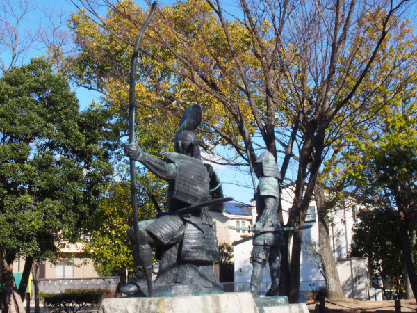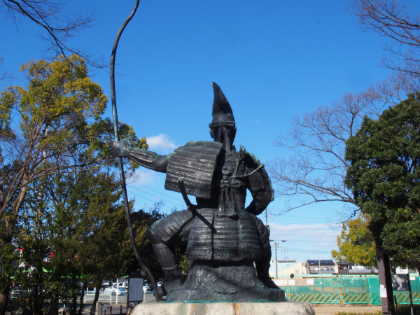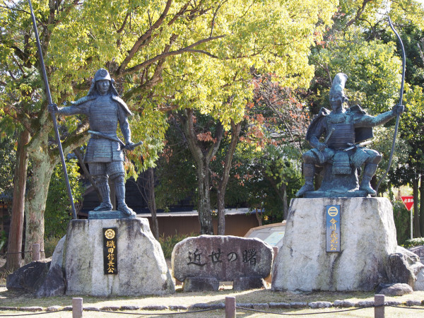 『東海一の弓取り』の異名の通り弓を持っている方が今川義元、隣に立つのが桶狭間の戦いで今川義元と雌雄を決した織田信長の像です。