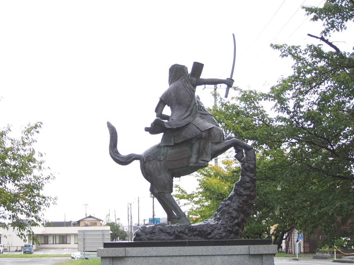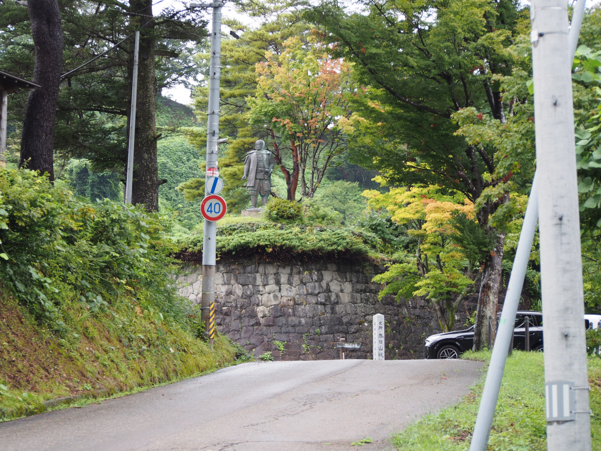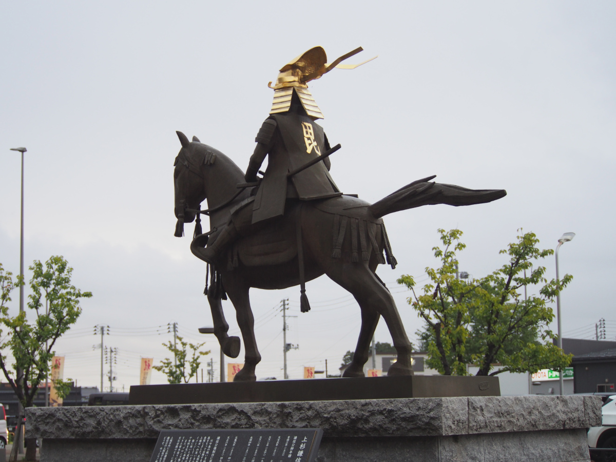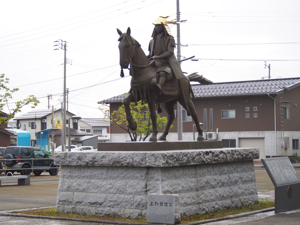 新潟県上越市、軍神上杉謙信の本拠地であった春日山城跡まで登ってきますと、上杉謙信像が立っています。