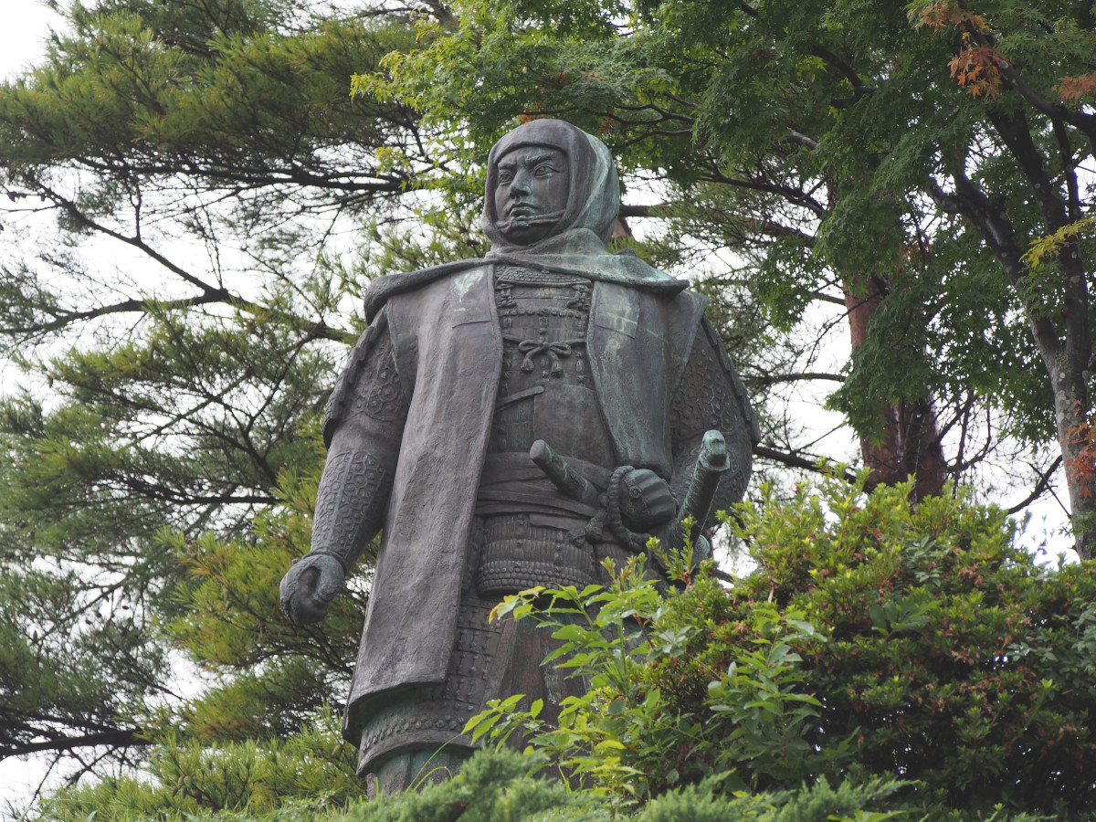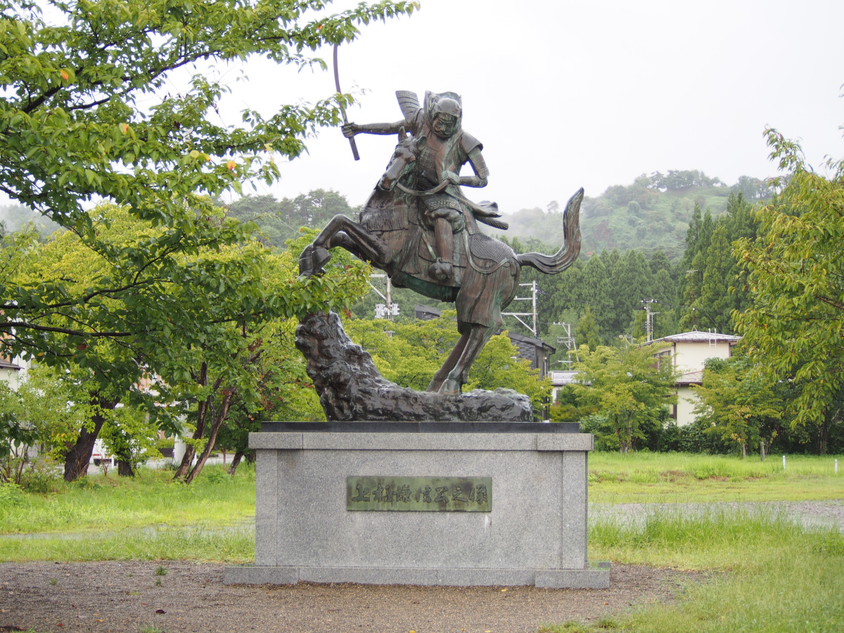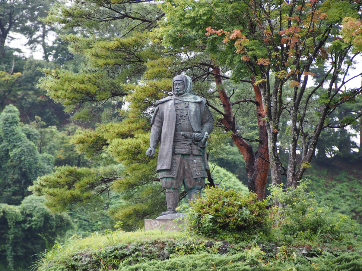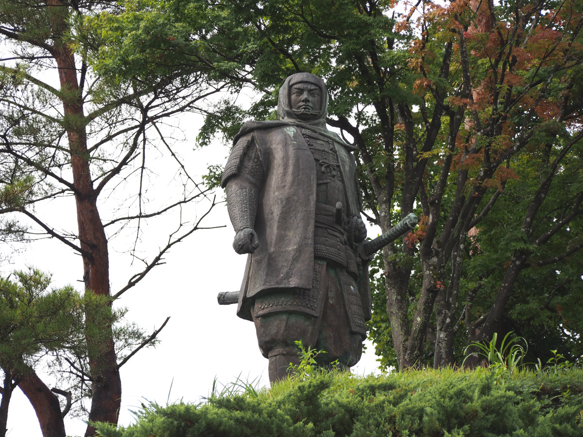 新潟県上越市、軍神上杉謙信の本拠地であった春日山城跡まで登ってきますと、上杉謙信像が立っています。