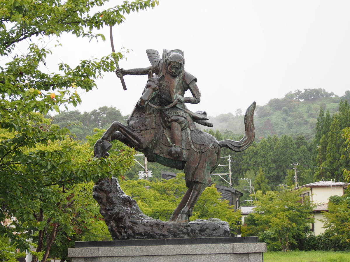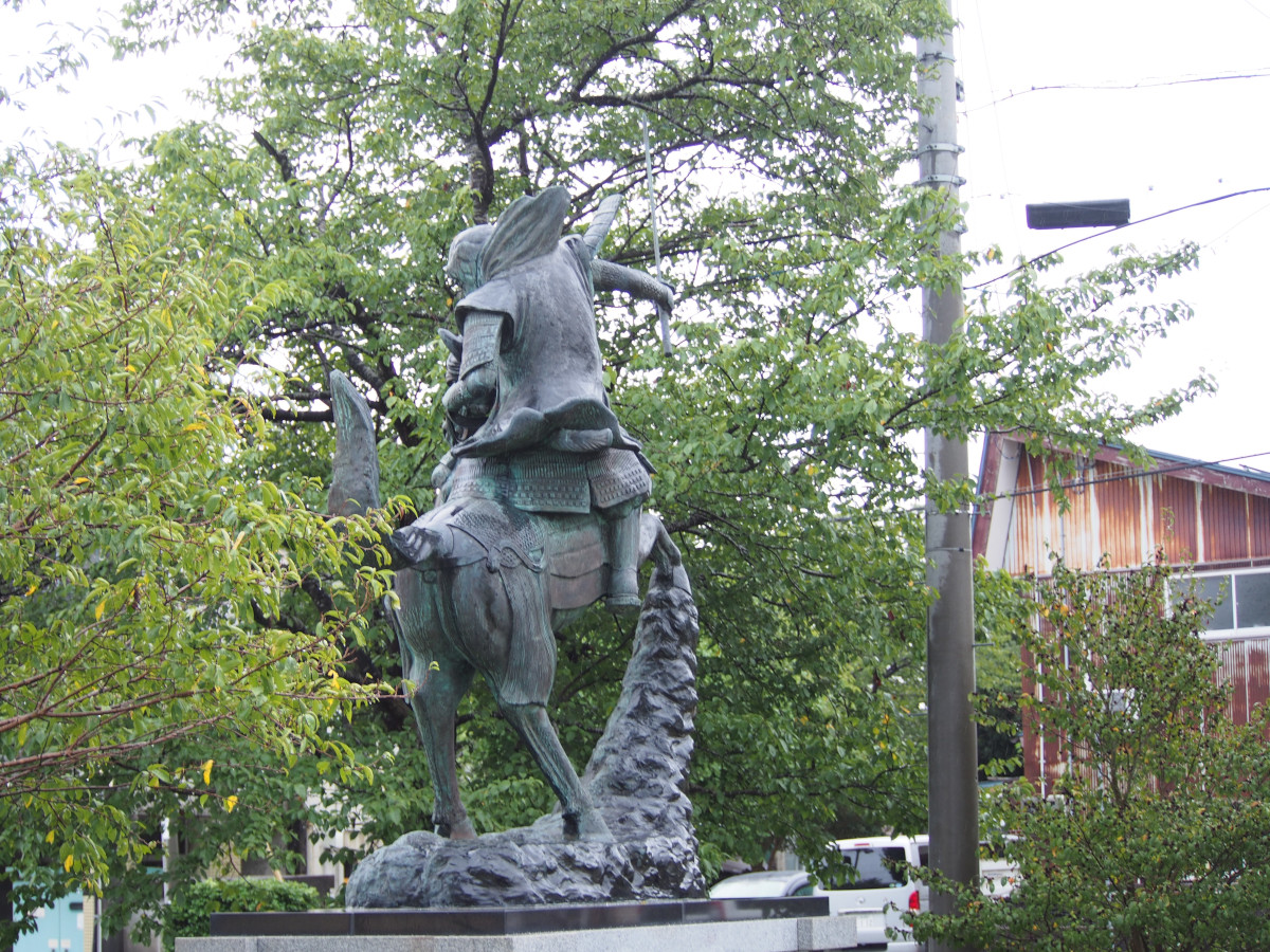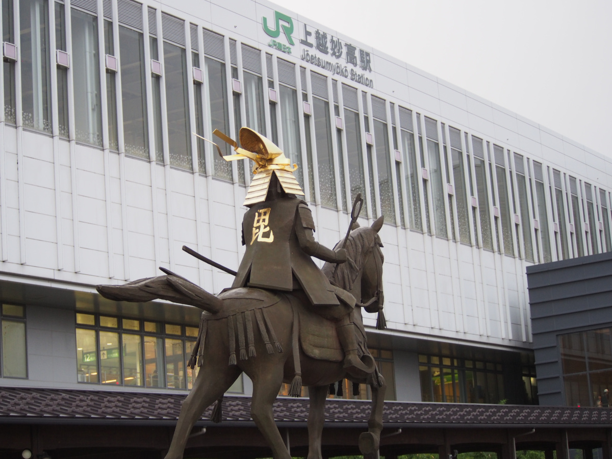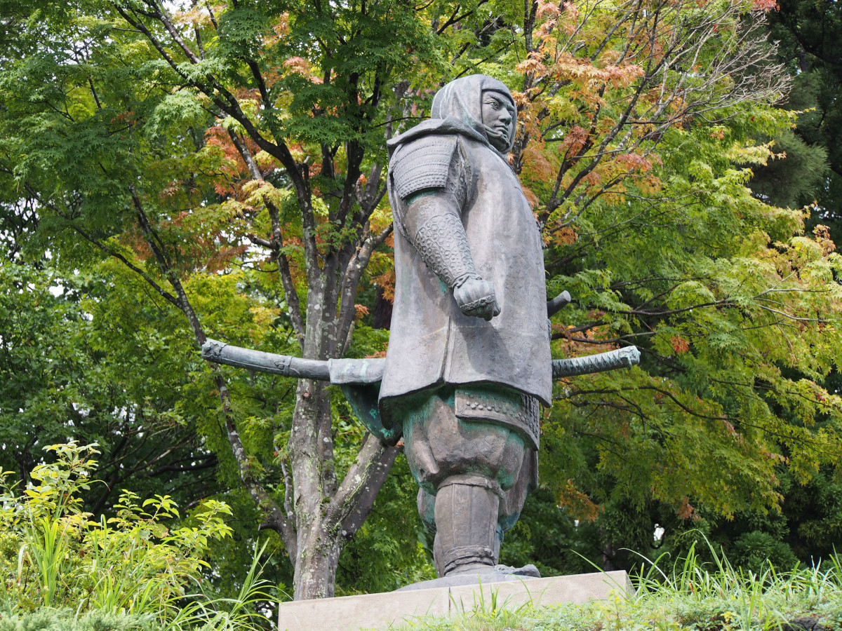 新潟県上越市、軍神上杉謙信の本拠地であった春日山城跡まで登ってきますと、上杉謙信像が立っています。